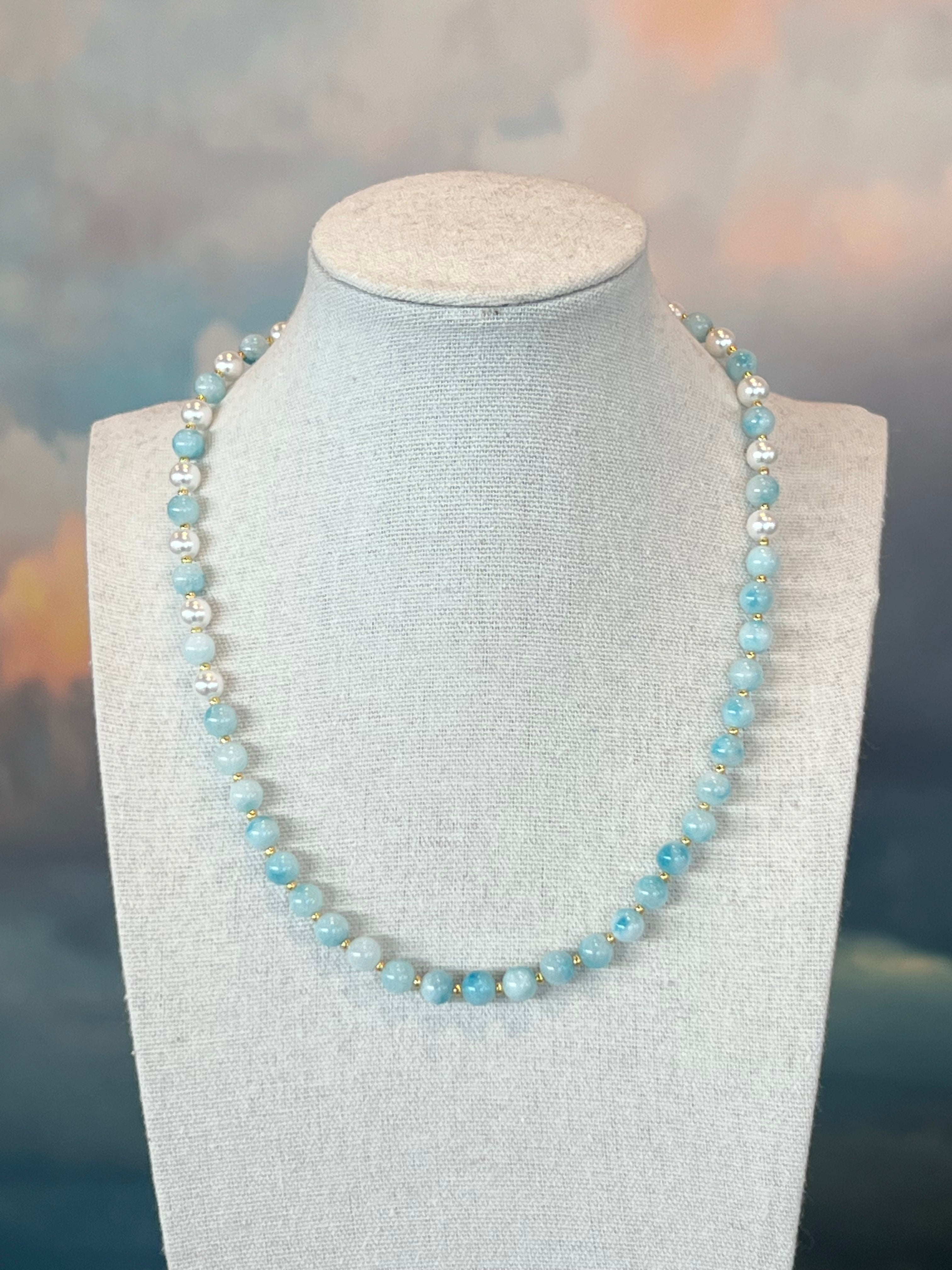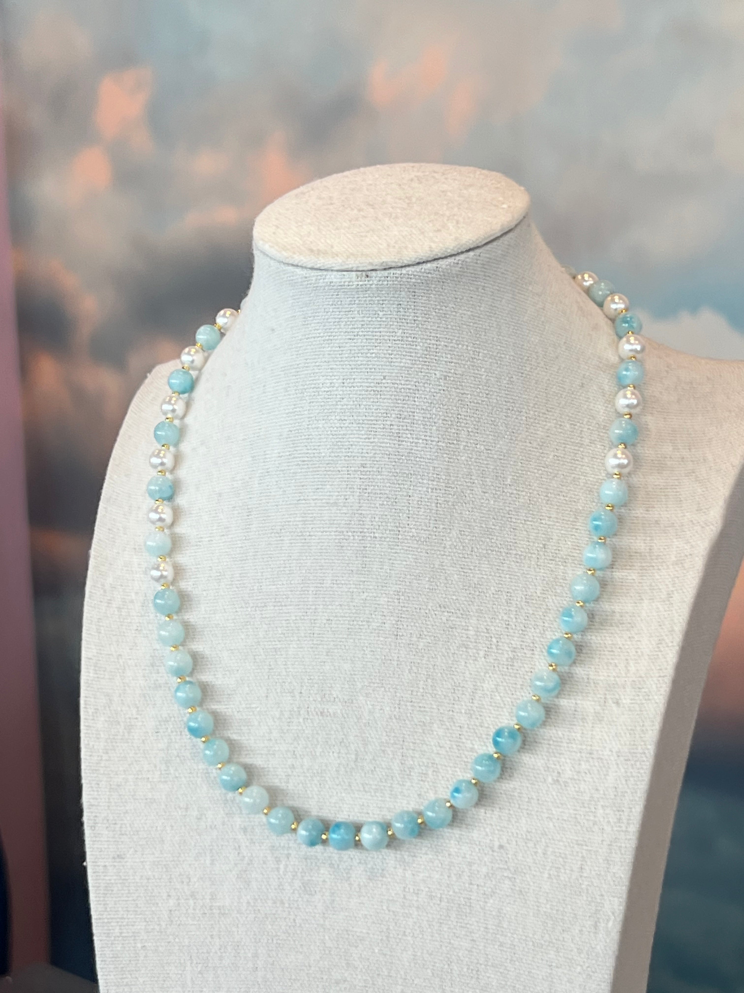 Larimar and Pearl Necklace, Zhanna Jewelry