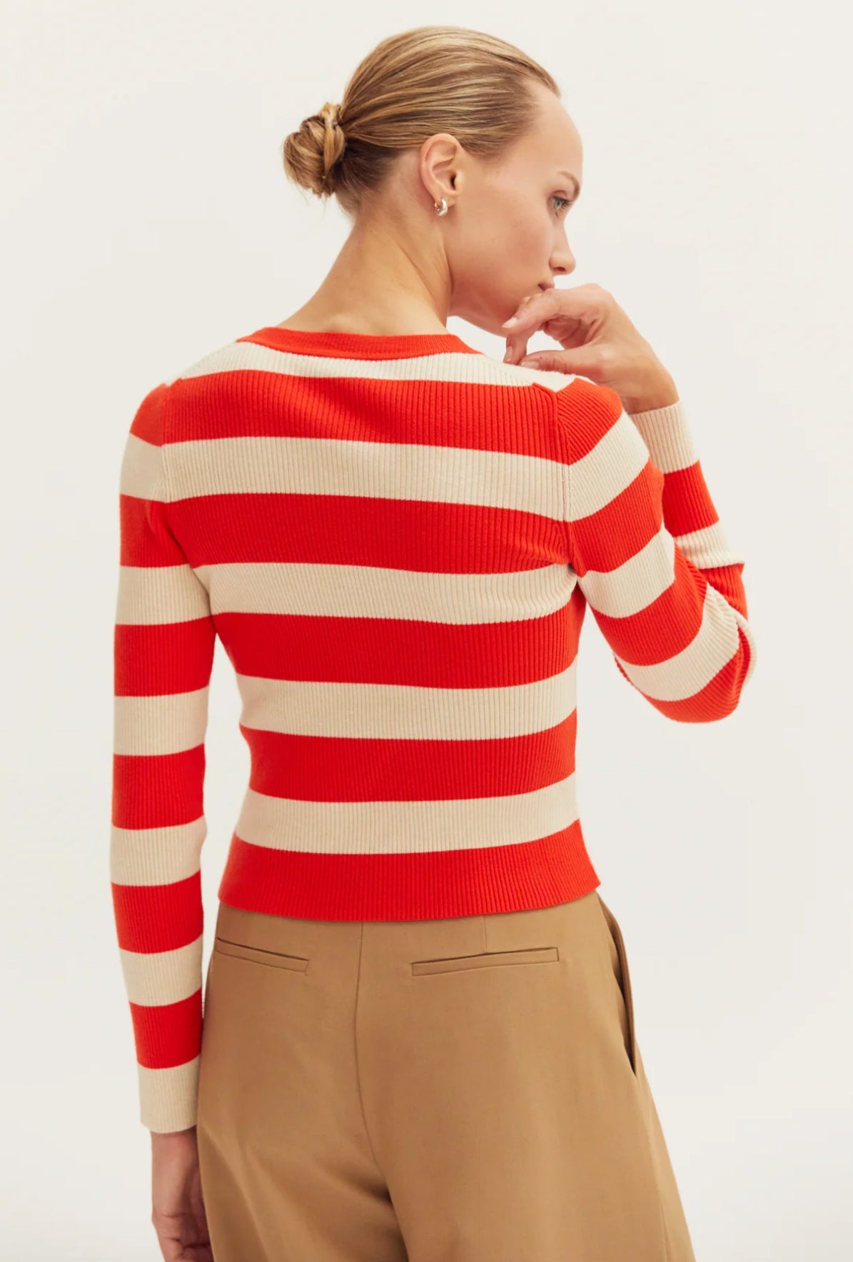 The Tracey Lace Up Ribbed Knit Top features a V-neckline with lace up detail and long sleeves with slit at the sleeve edge. Cut in a slim fit.