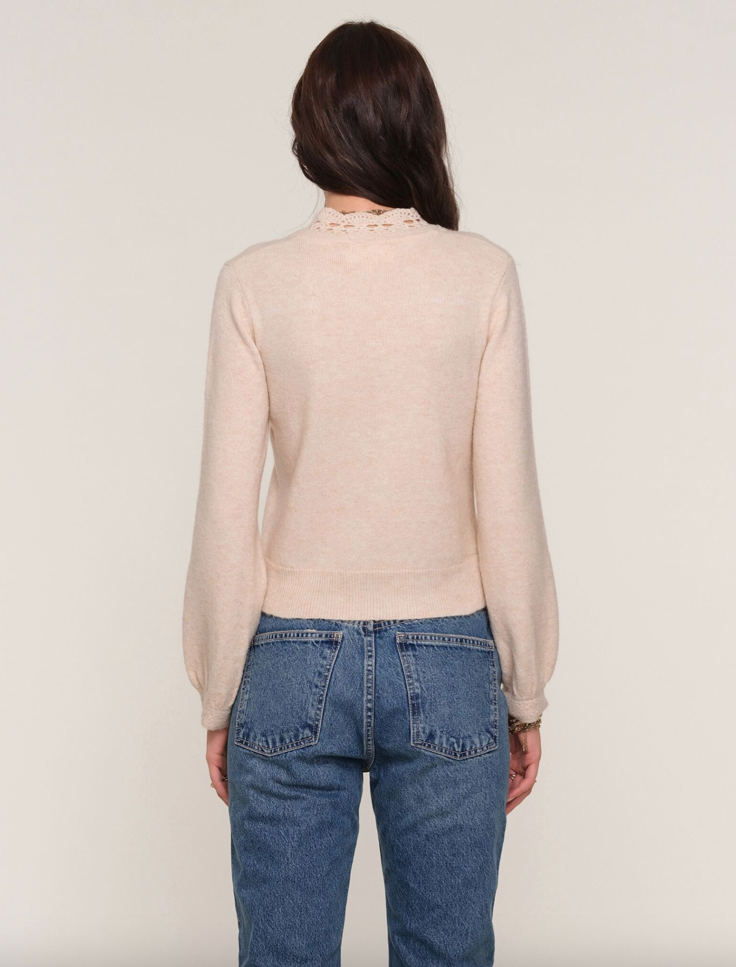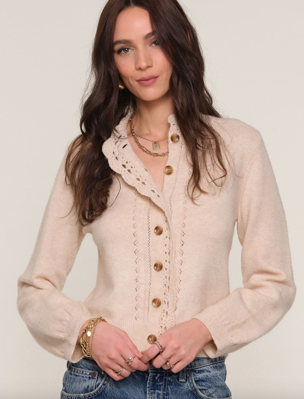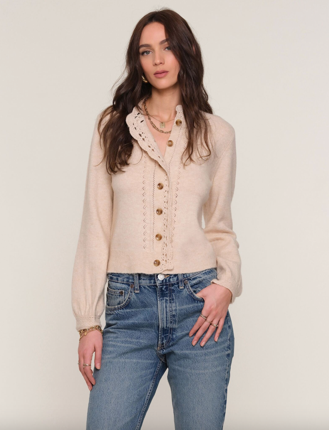 The Maudie Cardi is a Heartloom essential. Made from a super soft yarn, it features a slim fit, blouson sleeves and a crochet detail at the front opening edge. This will be a fall staple.