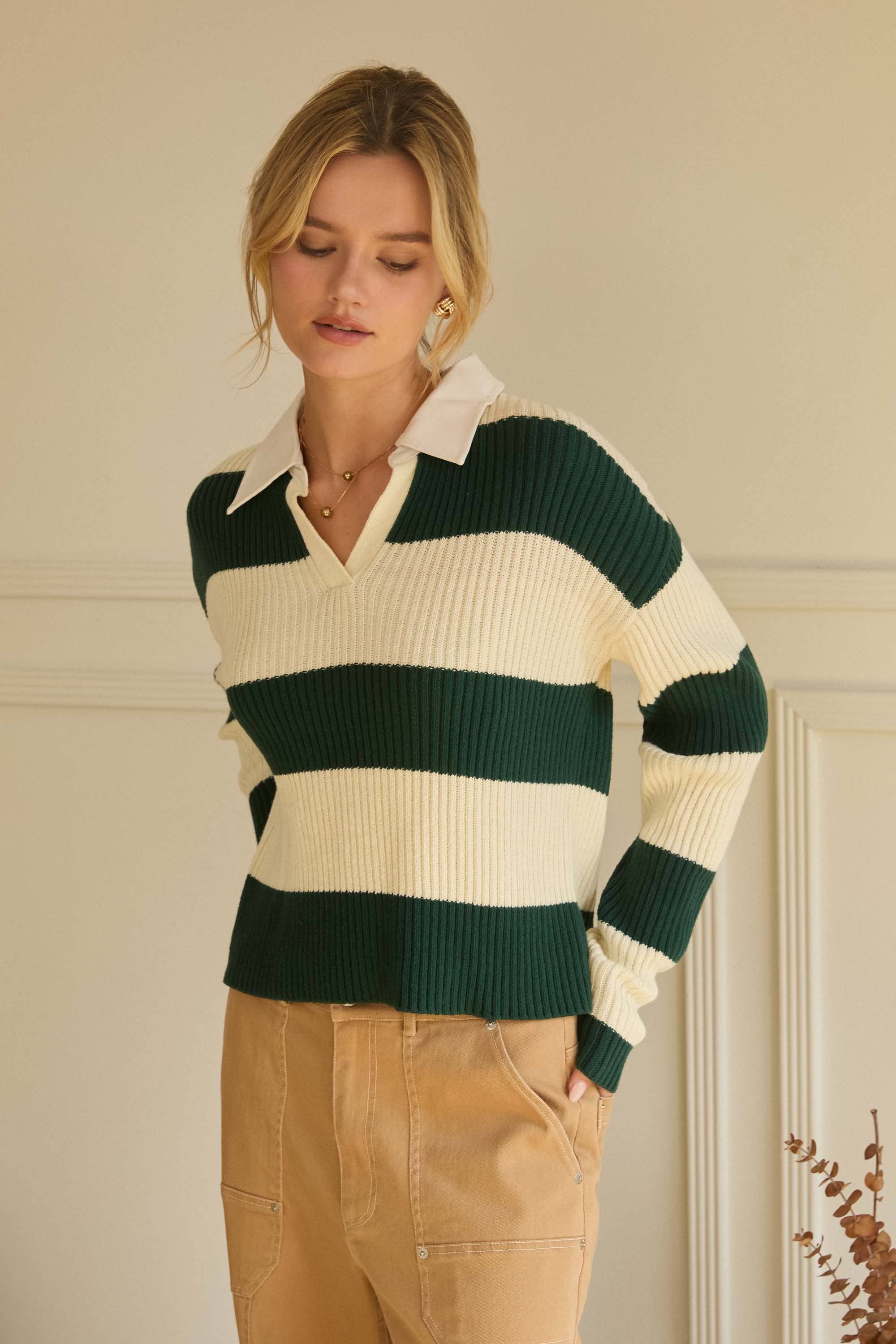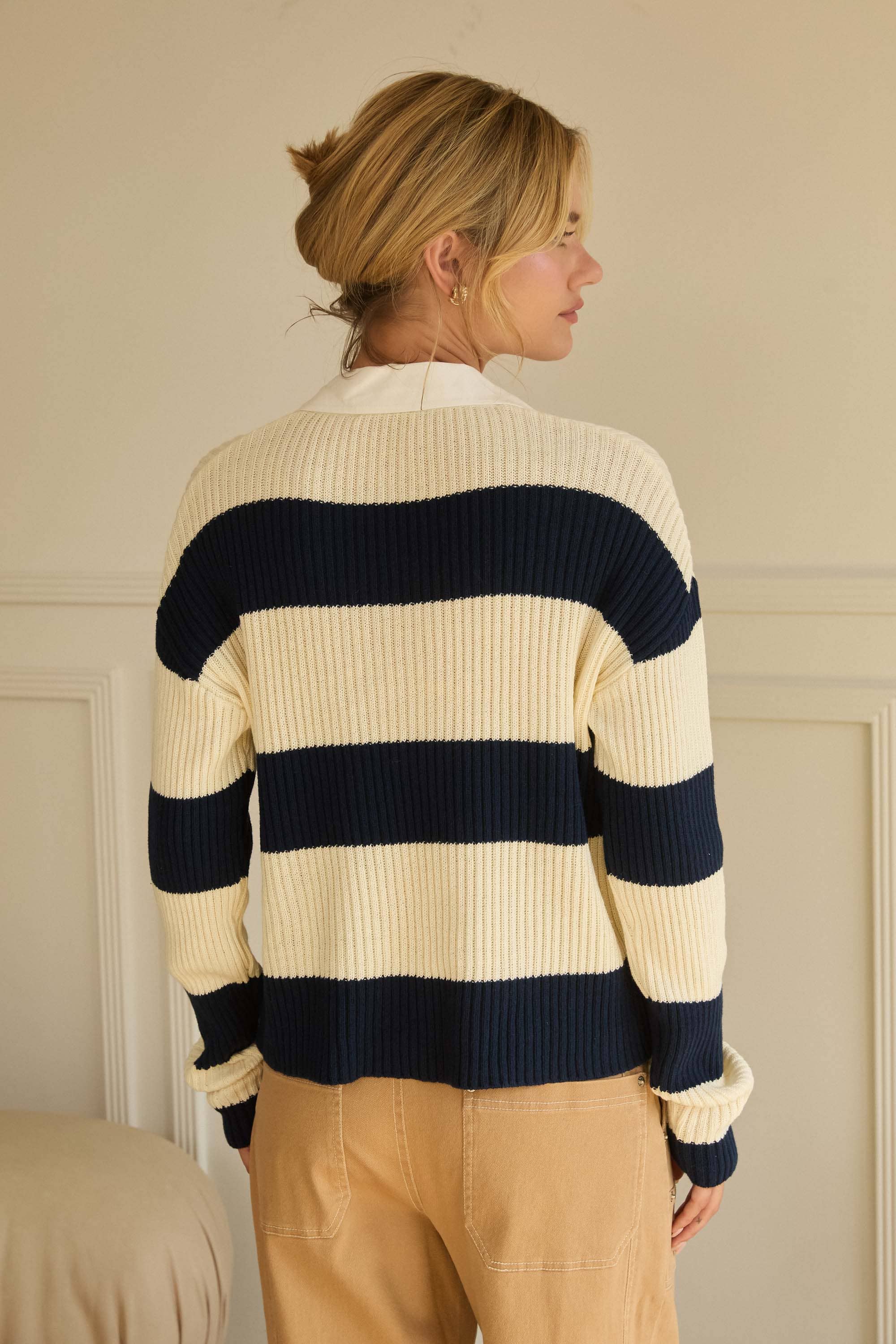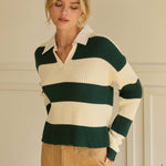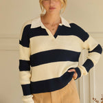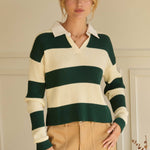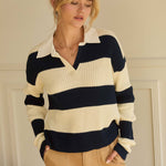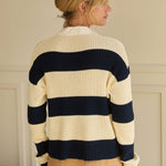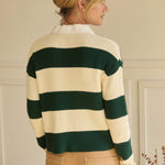 SKIES ARE BLUE - Striped Ribbed Knit Polo Shirt