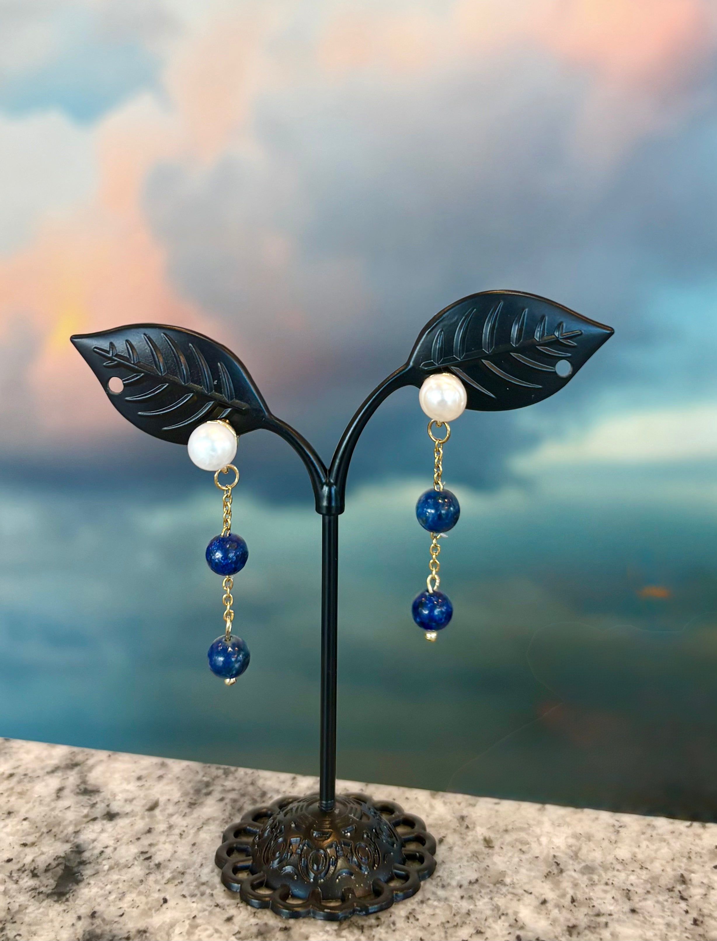 Zhanna Jewelry Pearl and lapis lazuli posted earrings